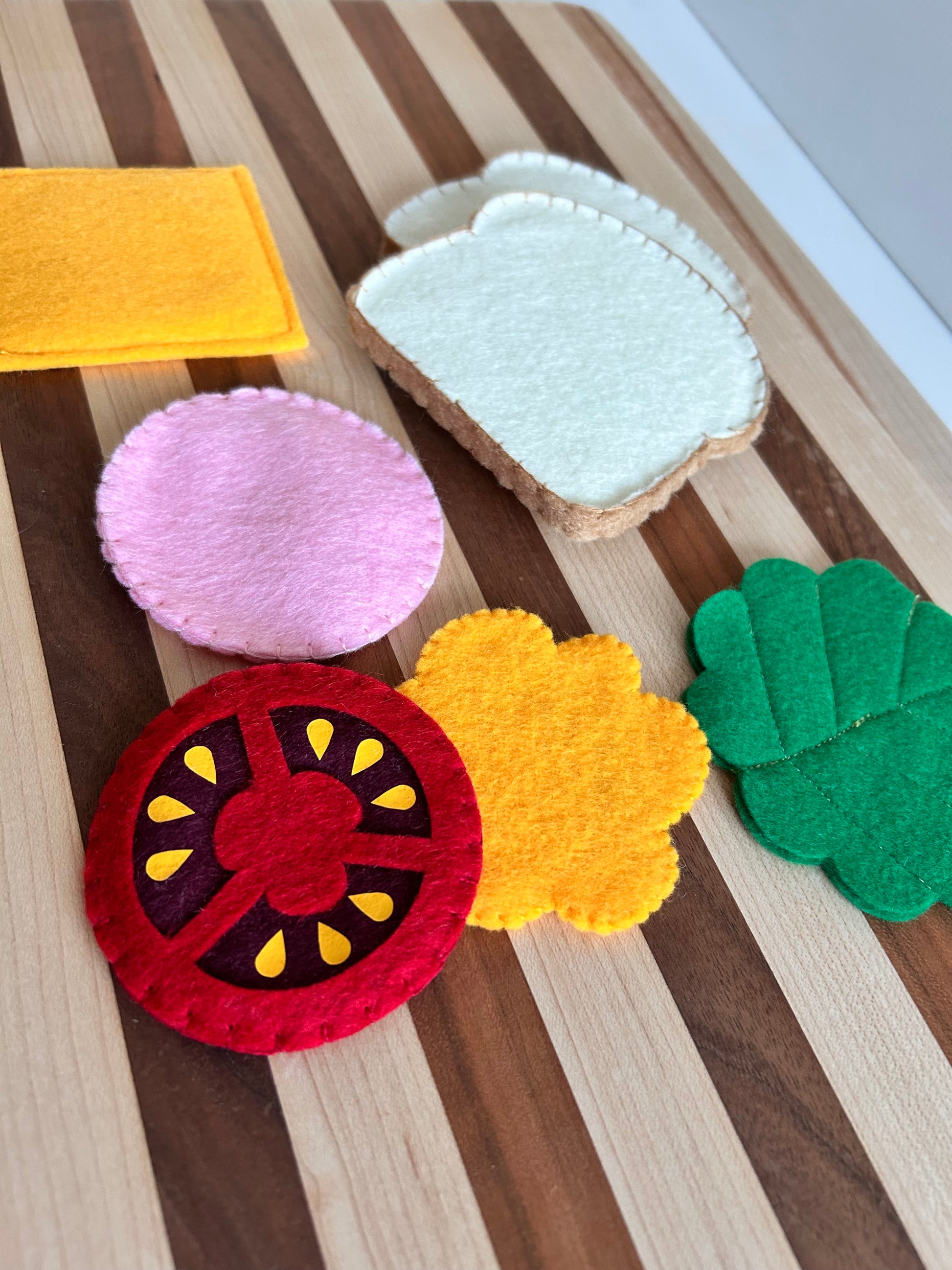Add a little fun to your little one's pretend play kitchen with the Felt Ham Sandwich set. Let their imagination run wild as they create the perfect lunchtime treat. A playful addition to any imaginative playtime!