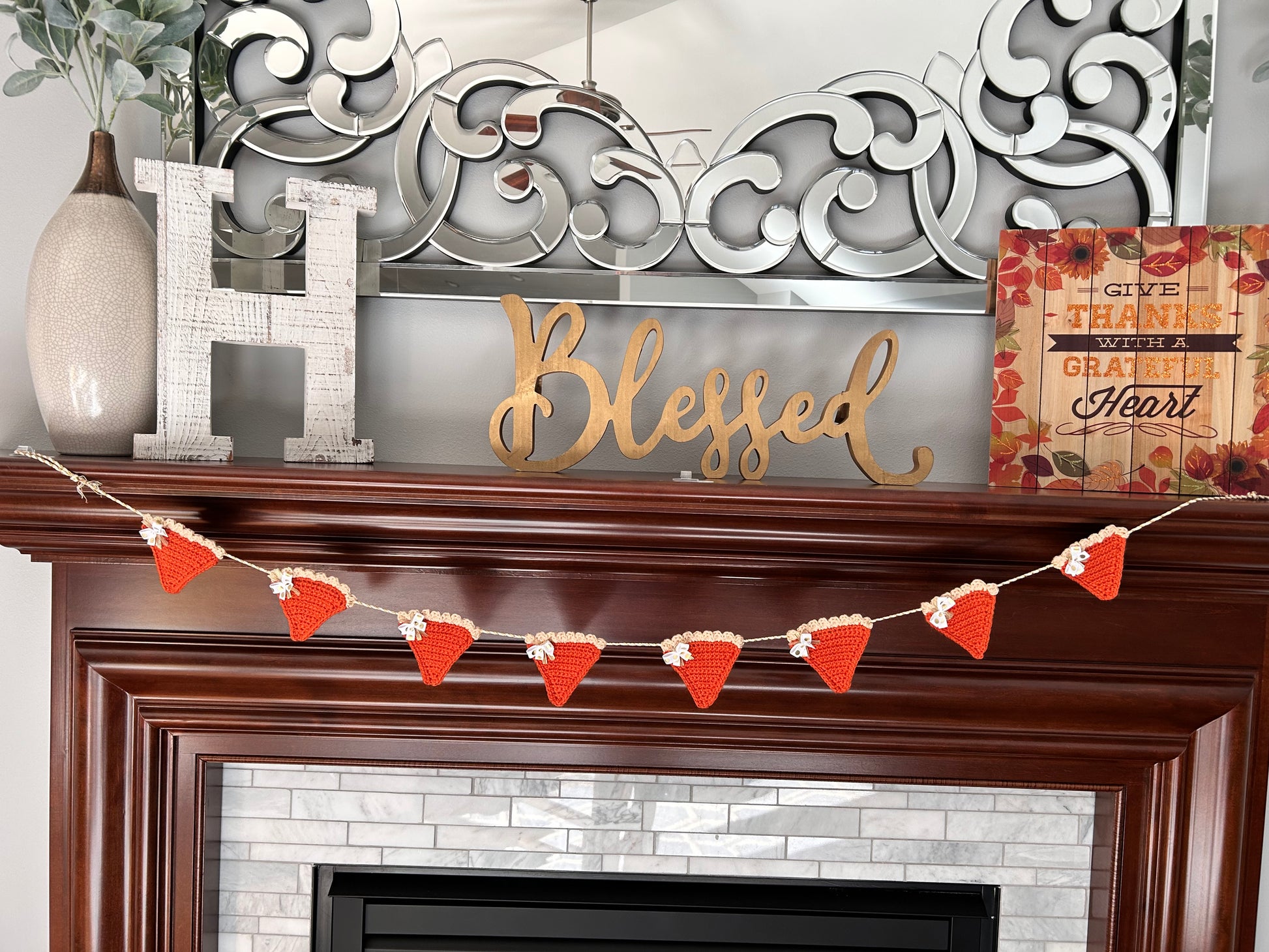 Add a touch of seasonal fun to your fireplace, mirror, bedside, office, or any beloved space with this cute pumpkin pie garland. It includes 8 pie slices strung on a gorgeous gold and ivory cord, each decorated with a sweet bow. The slices slide easily along the 5 1/3 -foot cord, letting you customize their placement to fit your space just right.