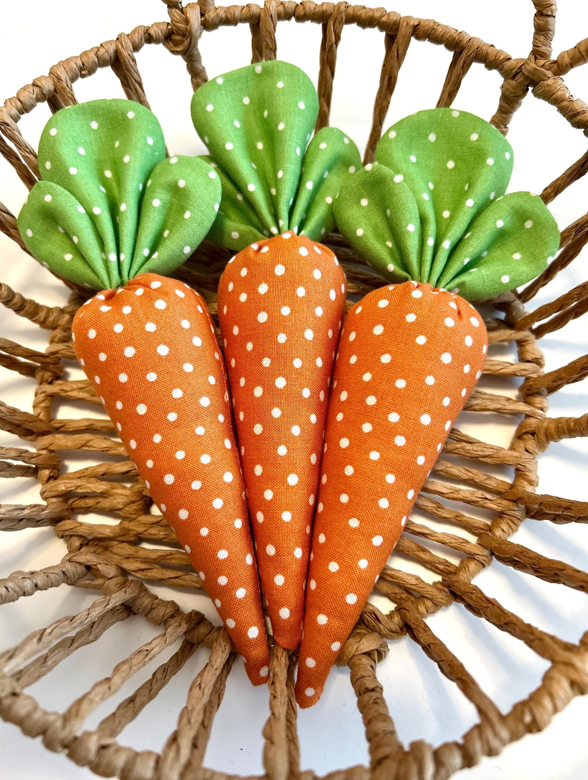 Get ready to add some "veggie-tude" to your spring, Easter or farmhouse decor with this set of 3 fabric carrots! Perfect for adding the finishing touch to any space.