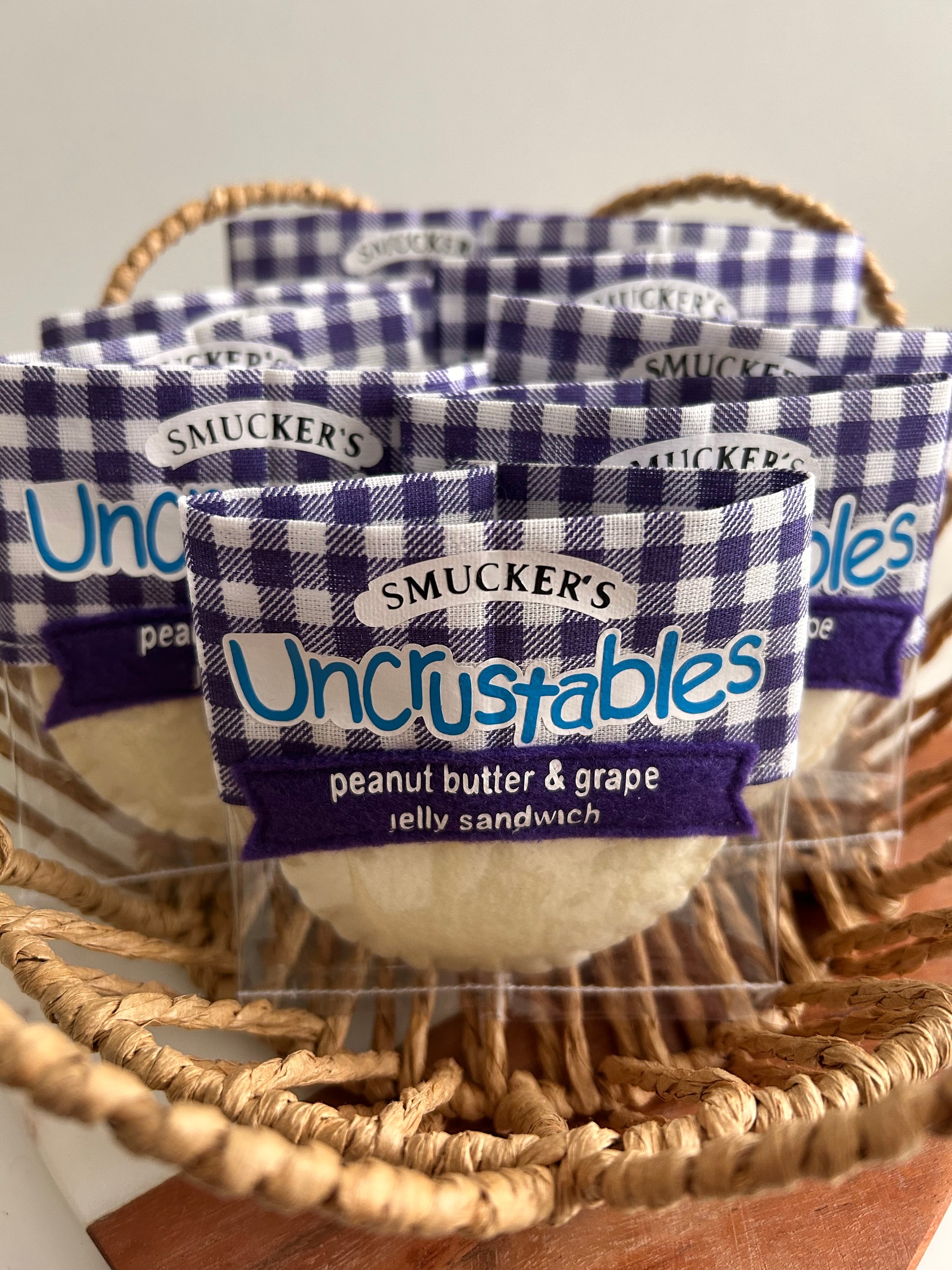 Purchase is for 1 Felt Grape Uncrustable inside an Uncrustable package.